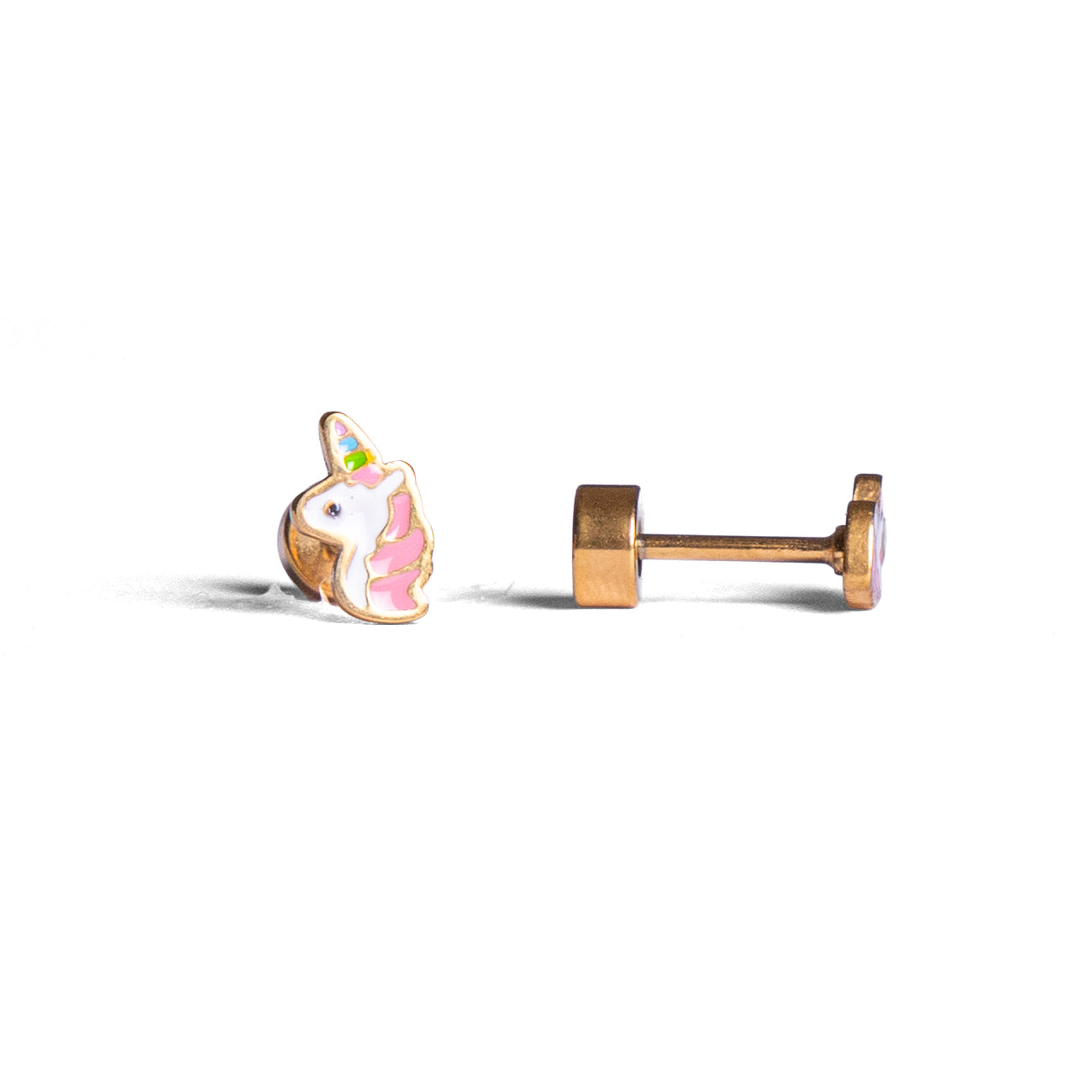 Deze eenhoorn-oorbelletjes wilt elk meisje wel dragen! De hypoallergene materialen zijn geschikt voor gevoelige huidjes en de platte schroefsluiting blijft stevig zitten, zelfs bij actieve kinderen. Het dunne staafje zorgt voor maximale comfort, een perfect design voor fantasierijke kids.