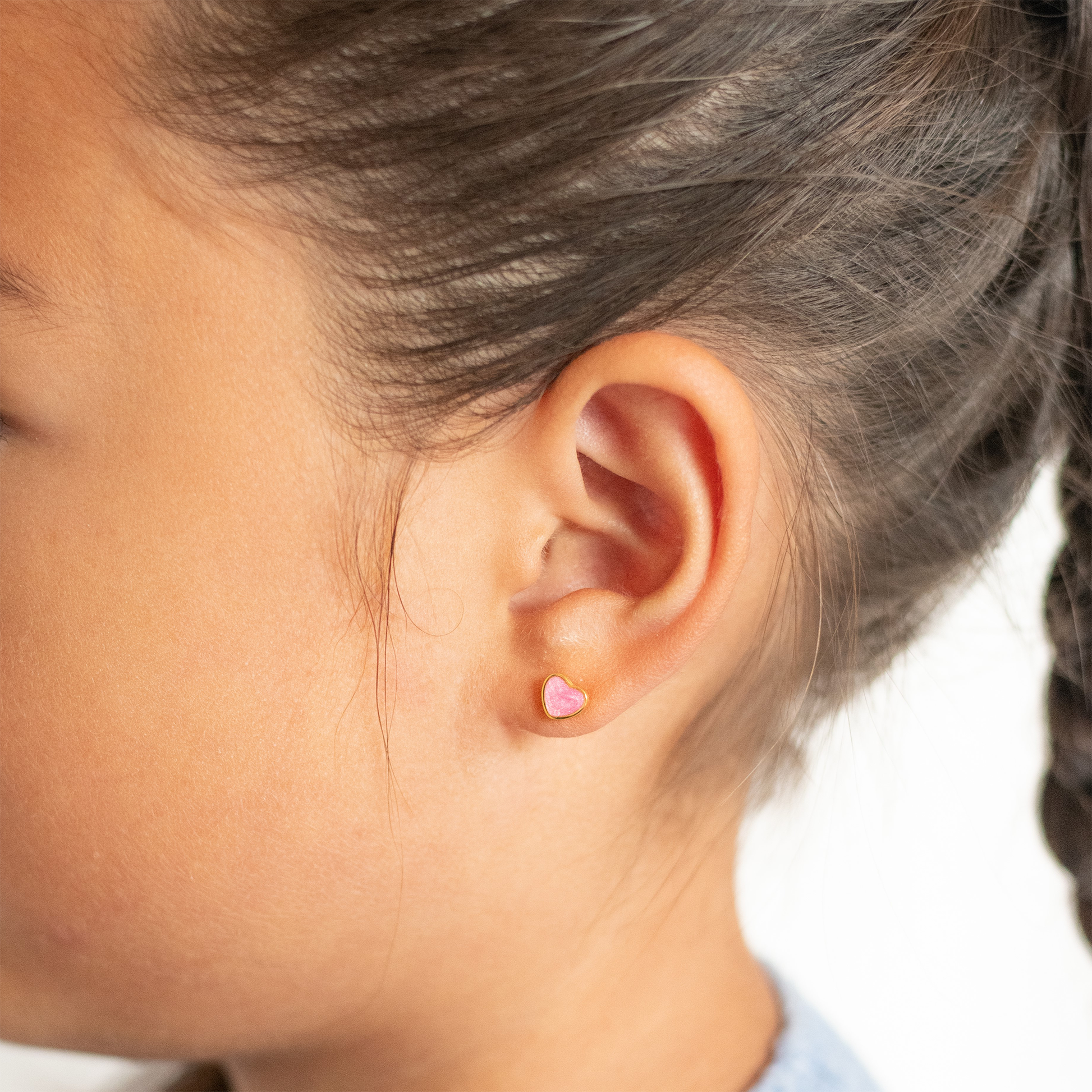 Onze oorbelletjes hebben een platte schroefsluiting die stevig blijft zitten. Zo kunnen kleintjes ze niet zelf lostrekken (ook baby’s niet!), prikt er niets achter het oortje én krijgt het gaatje lucht omdat de oorbel niet strak wordt aangedrukt.