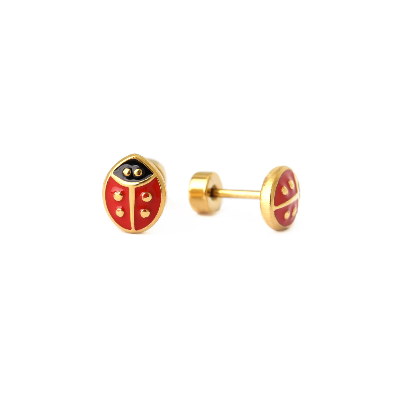 Deze lieveheersbeestje oorbellen zijn een vrolijke favoriet voor kleine meisjes. Speciaal gemaakt voor kinderoortjes met een extra klein formaat (0,8 mm x 6 mm) en hypoallergeen RVS (zilverkleurig of gold plated). Dankzij de platte schroefsluiting prikken ze niet aan de achterkant en blijven ze stevig zitten, ideaal voor dagelijks dragen en spelen.