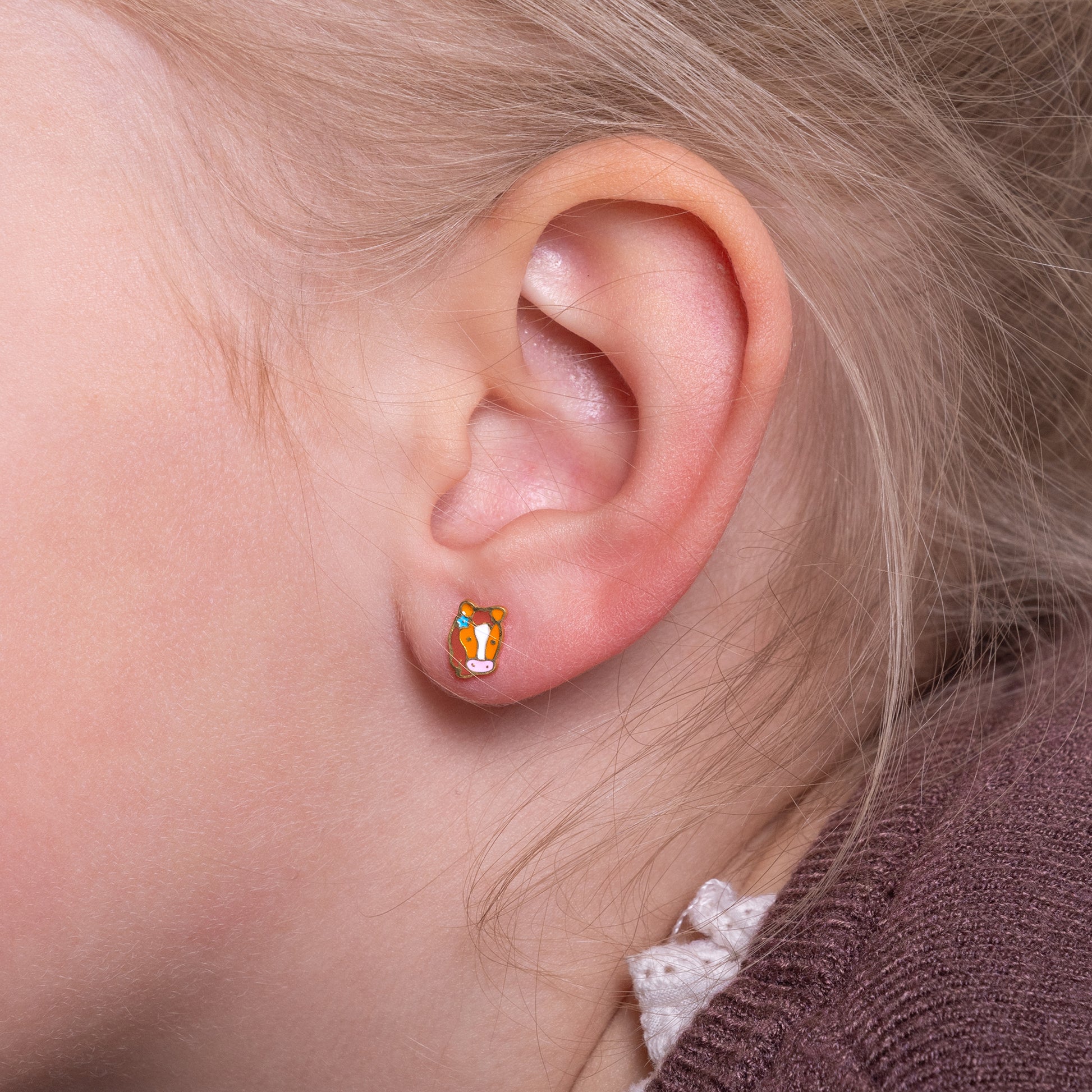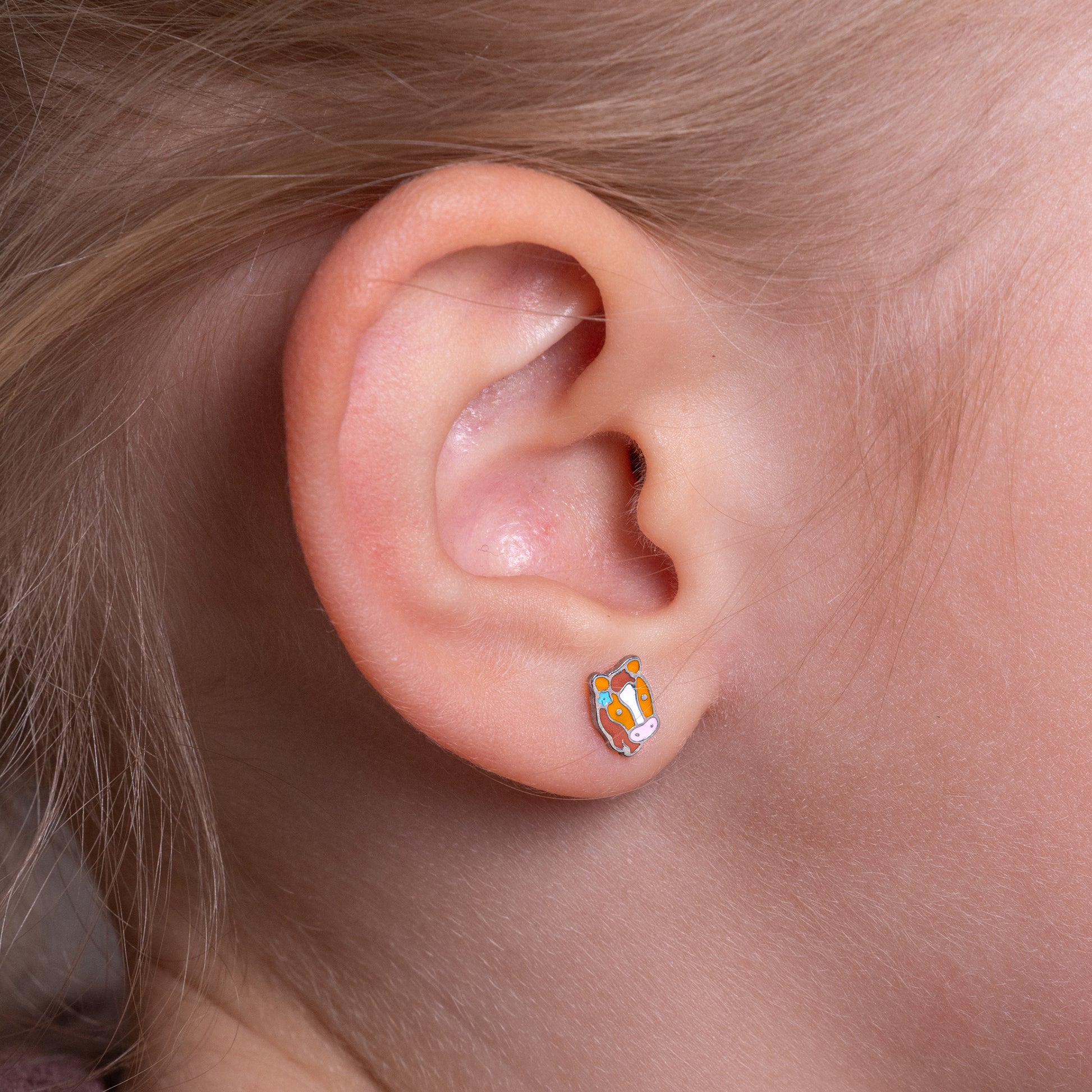 Voor echte paardenliefhebbers! Deze schattige paardjes zijn ontworpen voor kinderoortjes: lichtgewicht, hypoallergeen en met een platte schroefsluiting. Het fijne staafje zorgt voor optimaal draagcomfort, ook bij pas geschoten gaatjes. Een lief en tijdloos ontwerp dat altijd goed valt.
