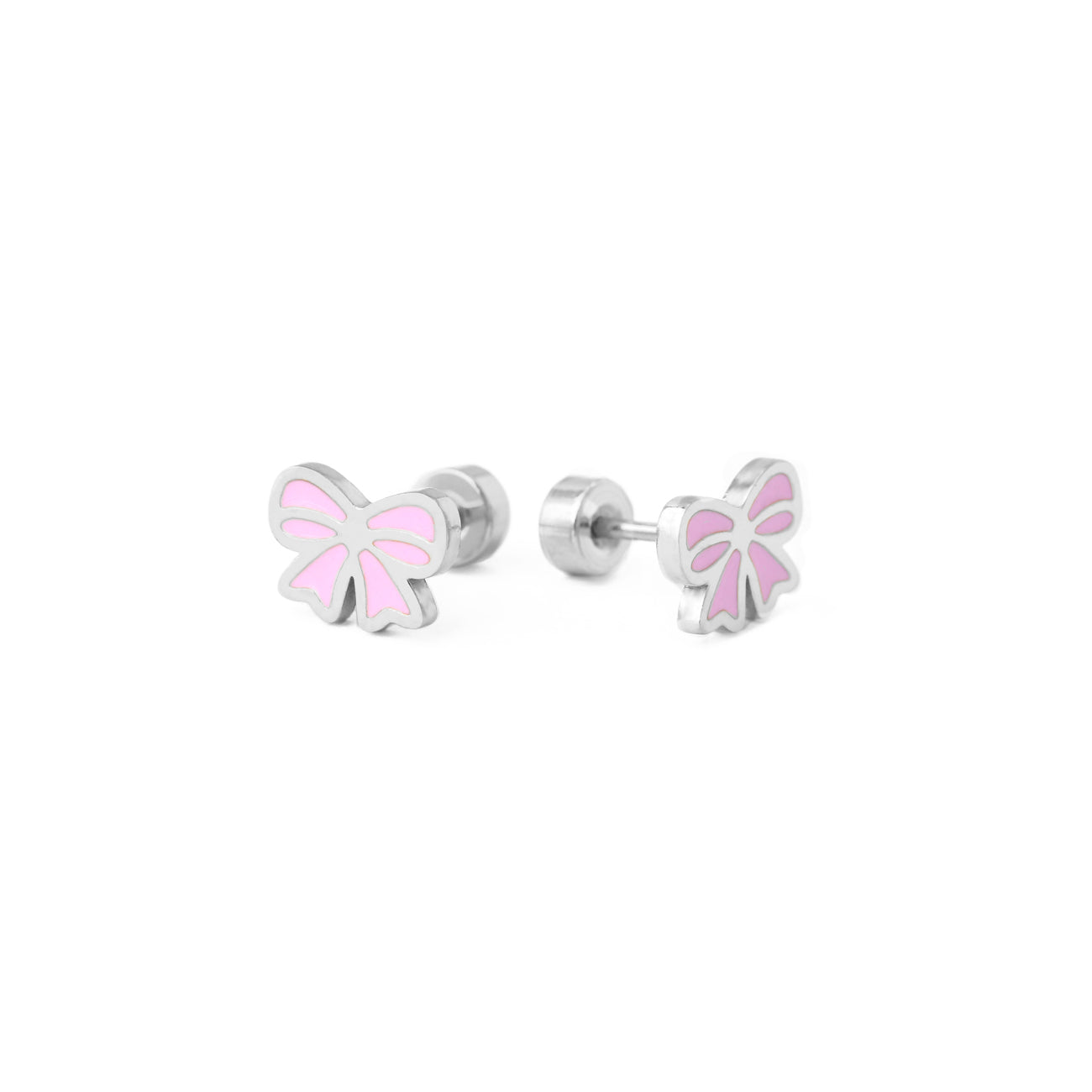 Schattig en stijlvol: deze roze strikje oorbellen zijn speciaal ontworpen voor kinderen. Verkrijgbaar in zilver of gold plated hypoallergeen RVS. Het kleine formaat en de platte schroefsluiting zorgen ervoor dat ze niet prikken en goed blijven zitten. Ook ideaal voor pas geschoten oorbelgaatjes.