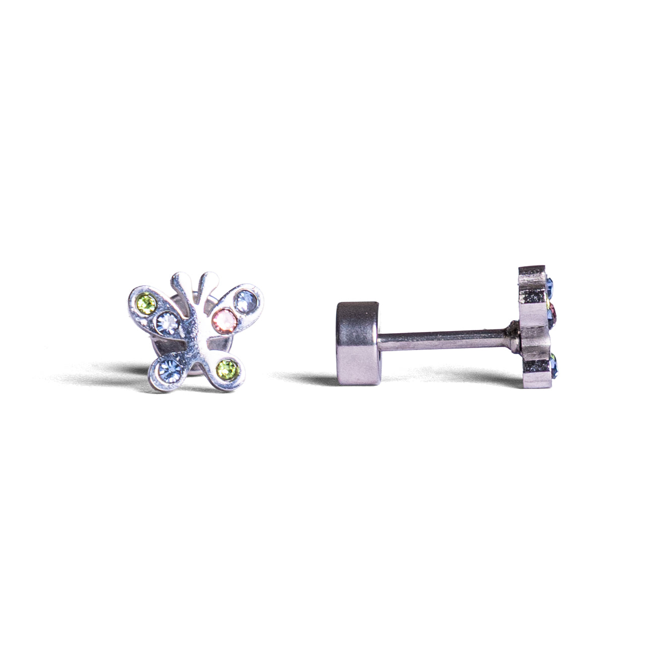 Deze fonkelende vlinders zijn een echte eyecatcher! De diamantjes geven een subtiele sparkle waar kinderen dol op zijn. Dankzij de veilige schroefsluiting blijven de oorbelletjes stevig zitten zonder te prikken. Het dunne staafje (0,8 mm) zorgt ervoor dat de oorlel niet belast wordt, zelfs niet bij pas geschoten gaatjes of gevoelige oortjes.